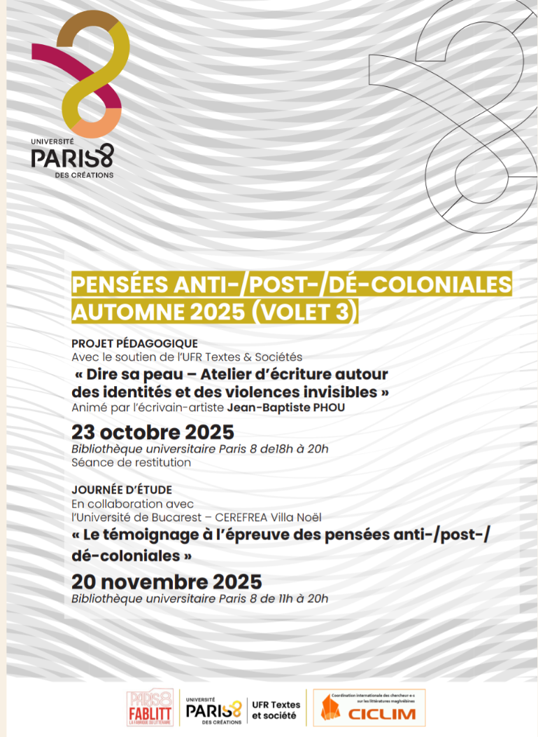 Lire plusJournée d’étude "Situer l’autothéorie à travers ses formes d’écriture" Lundi 17 novembre 2025 10:30-18:00 (…)